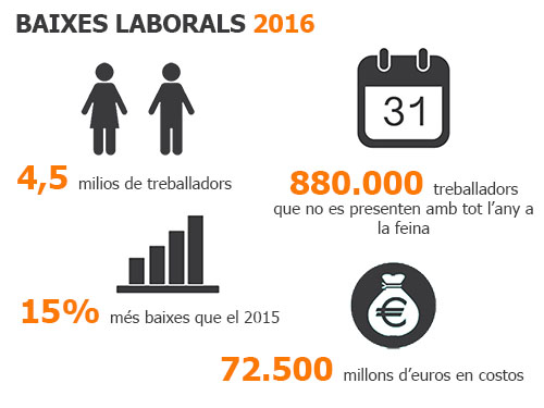 L'absentisme laboral augmenta el 2016 amb més d'un 10%
